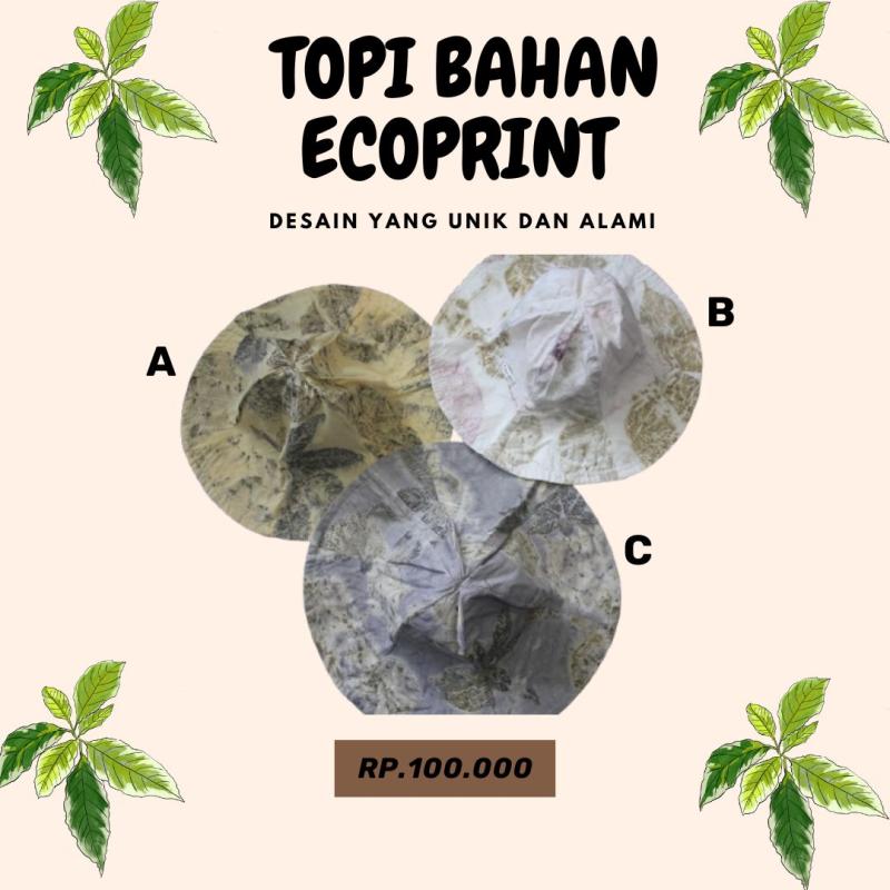 Topi ecoprint adalah aksesori yang dibuat dengan teknik ecoprint, yaitu teknik yang menggunakan bahan alami seperti daun, bunga, dan ranting untuk menciptakan motif dan pola yang unik pada kain. Topi ecoprint ini tidak hanya stylish, tetapi juga ramah lingkungan dan memiliki cerita unik di baliknya.